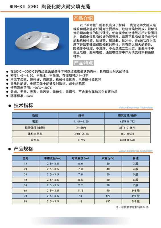 RUB-SIL(CFR) 陶瓷化防火耐火填充绳