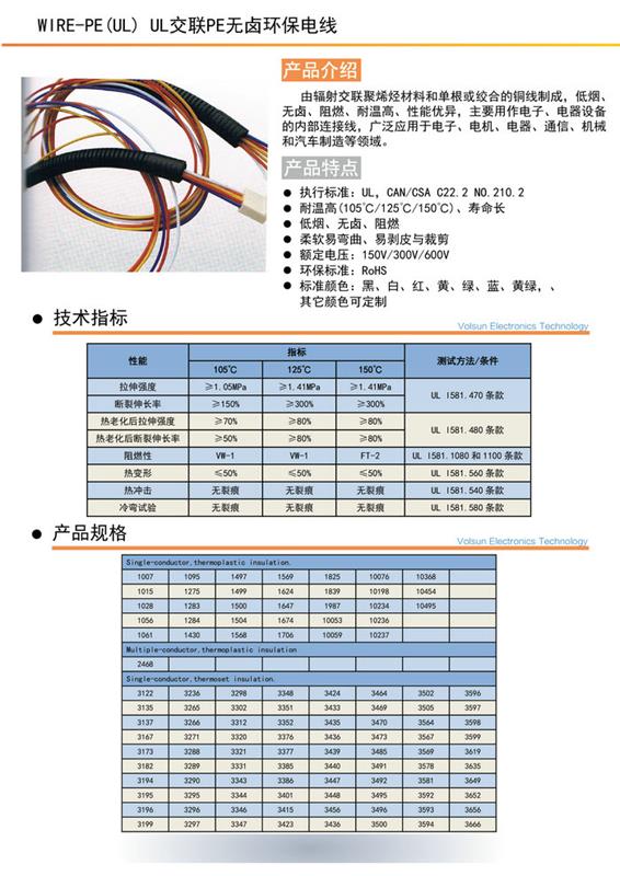 WIRE-PE(UL) UL交联PE无卤环保电线